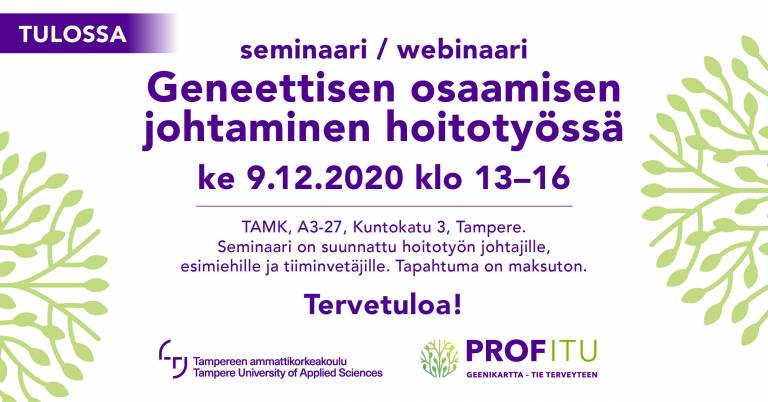 Seminaari / Webinaari - Geneettisen osaamisen johtaminen hoitotyössä ke 9.12.2020 klo 13-16 26.10.2020 Tapahtumat