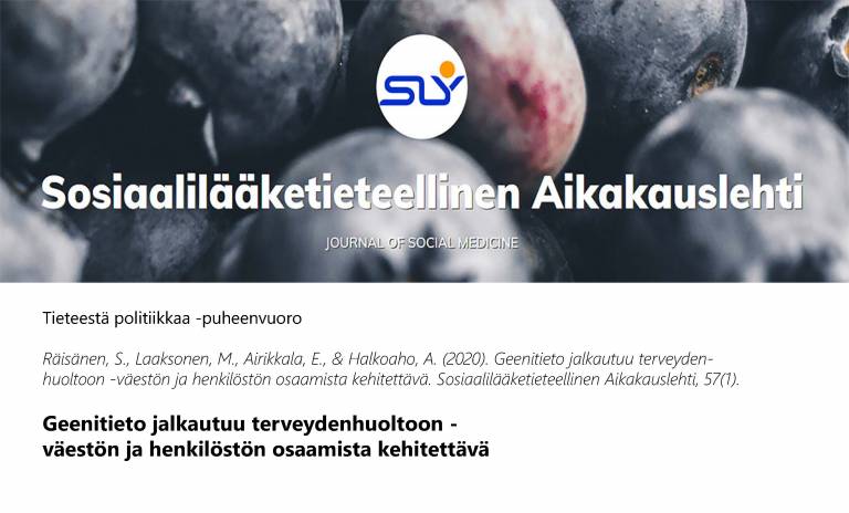 Geenitieto jalkautuu terveydenhuoltoon – väestön ja henkilöstön osaamista kehitettävä 25.2.2020 Uutiset