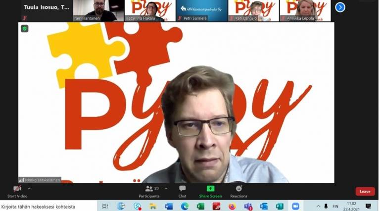 Kuvakaappaus verkkokokouksesta, kuvassa näkyy osa osallistujista.