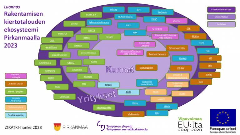 Tampereen ammattikorkeakoulu ja Tampereen yliopisto pyrkivät yhdessä kehittämään kiertotaloustavoitteita tukevaa ekosysteemitoimintaa tunnistamalla rakennusalan tarpeet Pirkanmaalla toimijalähtöisesti ja alueellisesti. Hankkeessa tehdään yhteistyötä yritysten, yhdistysten ja viranomaisten kanssa.