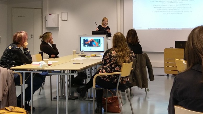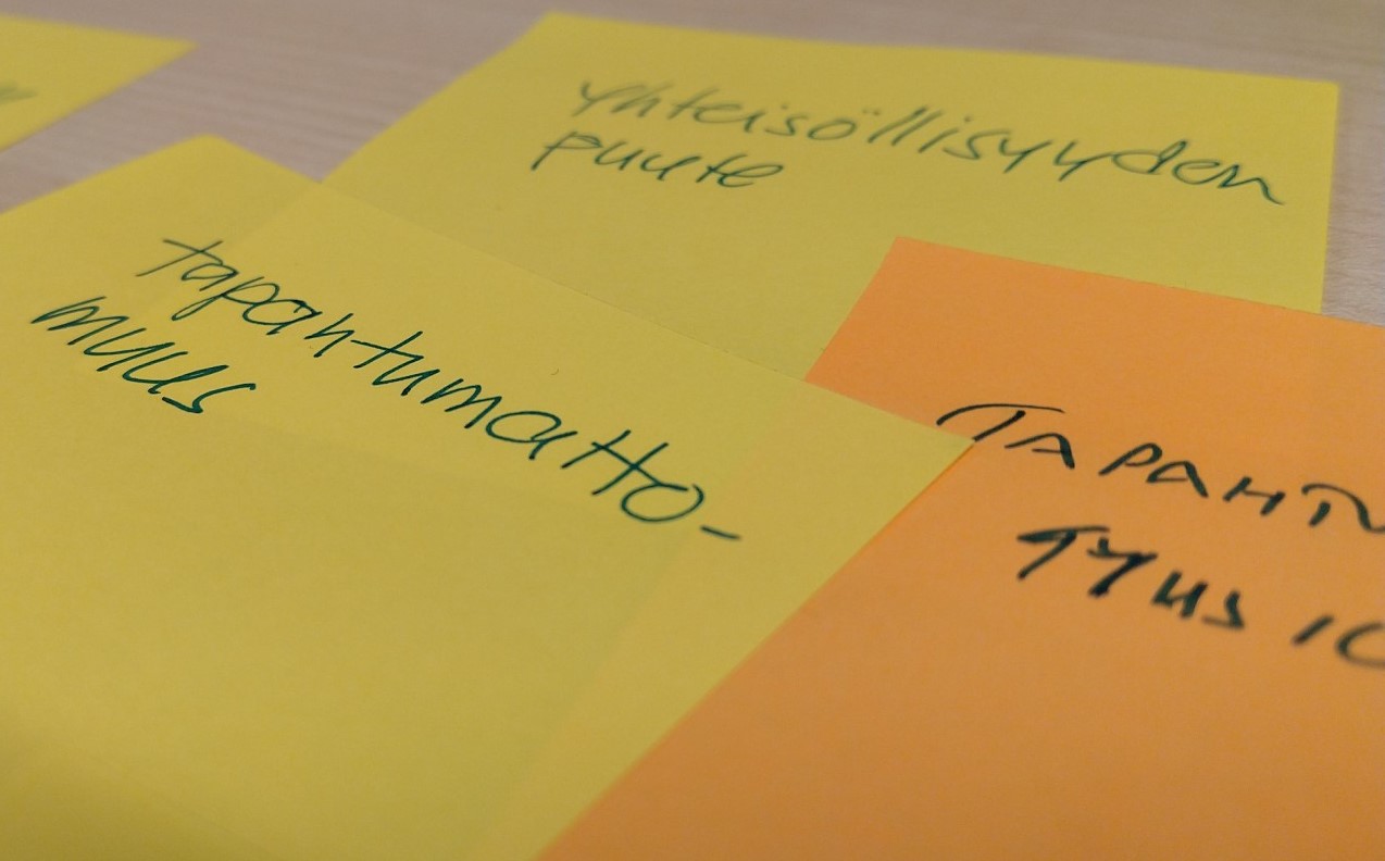Ennen työpajan alkua ilmassa oli jännittynyttä odotusta. Korona-aika oli yllättävänkin tehokkaasti totuttanut useat meistä teknologiavälitteiseen sosiaalisuuteen – tai etäisyyteen. Osa työpajan toteuttajistakin tapasi toisensa vasta nyt ensimmäistä kertaa kasvokkain. Fasilitaattori Sikke Leinikin (HUMAK, Freet20230-hanke) ohjauksessa jännitys karisi nopeasti ja työskentelyssä päästiin vaivattomasti vaihtamaan ajatuksia, kokemuksia ja ideoita.