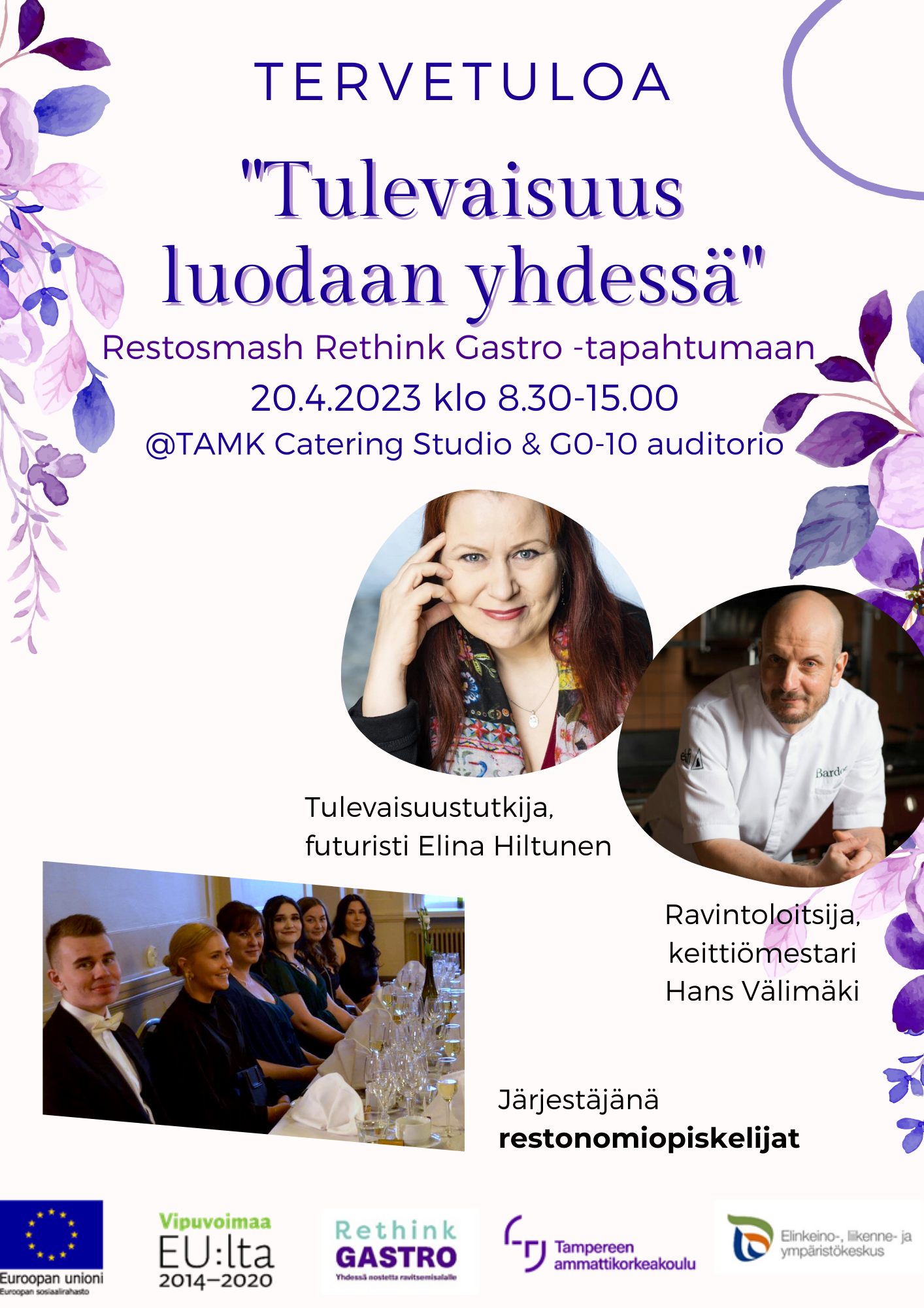 TAMkin kolmannen vuoden restonomiopiskelijoiden järjestämässä tapahtumassa on esityksiä, puheenvuoroja, hankeyrityksien verkostoitumista sekä muita aktiviteetteja.