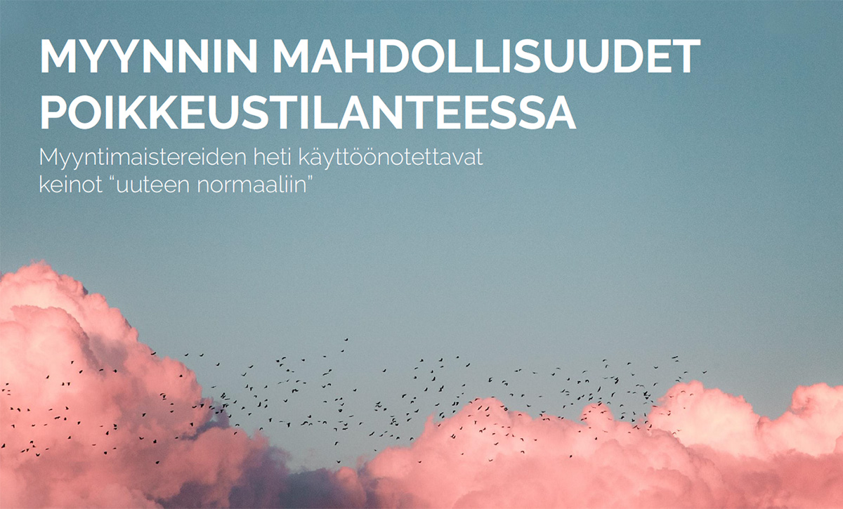 Tutustu Myynnin mahdollisuudet poikkeustilanteessa -oppaaseen, anna palautetta, kommentoi ja jaa eteenpäin niille, jotka oppaasta saattavat hyötyä.