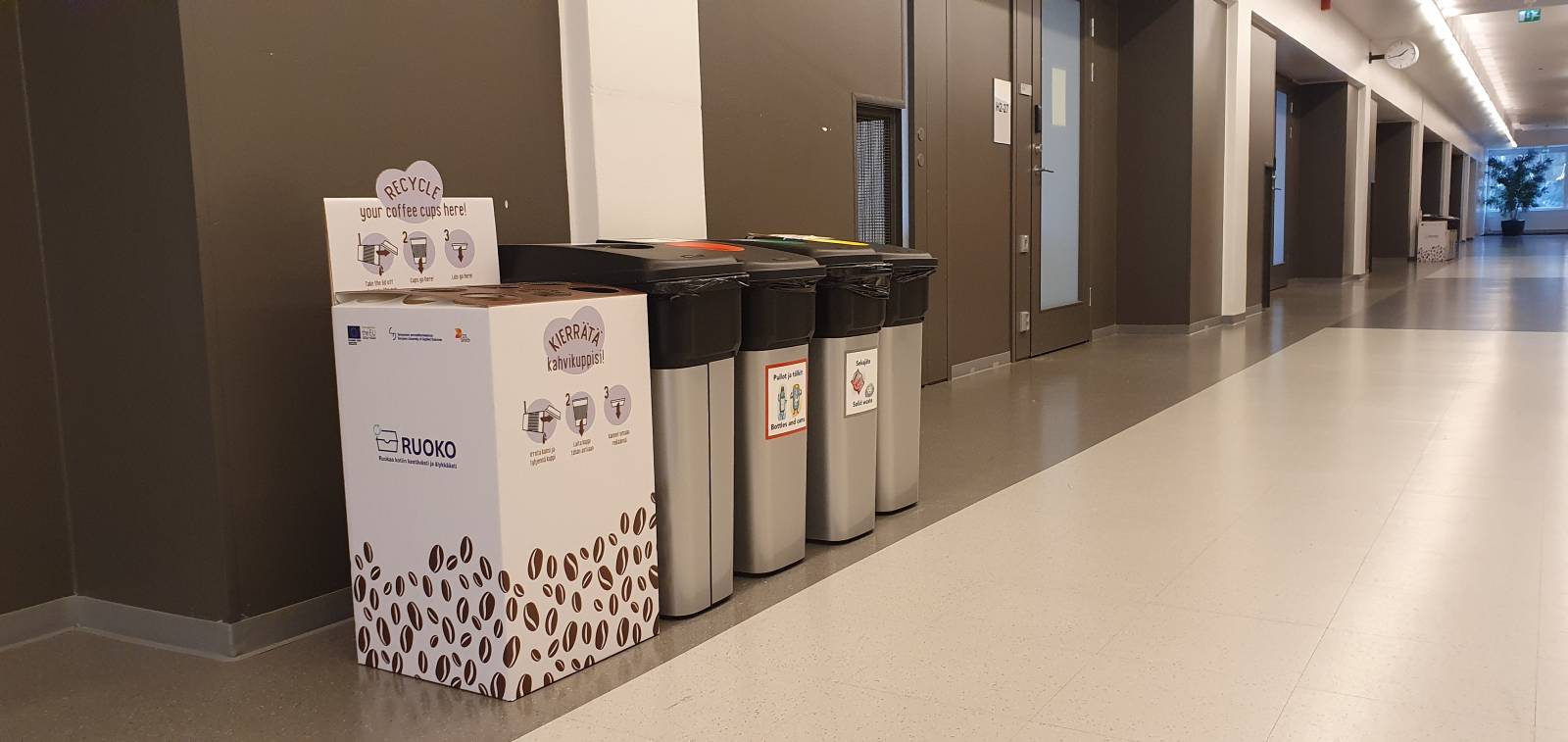 RUOKO-hankkeen tavoitteena on lisätä take away -ruoka-annospakkausten, siten myös kertakäyttöisten juomakuppien, lajittelu- ja siten myös kierrätysastetta. Alkukartoituksessa kampuksen lajitteluastioista löytyi kertakäyttöisiä kuppeja jokaisesta jakeesta: biojäte, muovi, kartonki, paperi, sekä pullot ja tölkit. Vastauksena lajitteluhaasteeseen DS Smith toimitti kokeiluun aaltopahvista valmistetut lajitteluastiat kertakäyttökupeille. Lajitteluastioita löytyy nyt 11 kpl eri puolilta TAMKin pääkampusta.