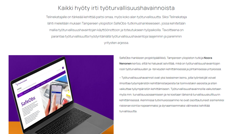 Turvallisuushavaintoja ja SafeObs-hanketta käsitelty hankekumppanimme Telinekatajan viestinnässä