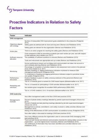 The listing of proactive indicators collected from the academic literature has been made to supplement the safety performance map.