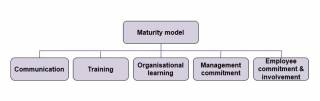 The model explores safety culture through the following safety culture dimensions: 1) communication, 2) training, 3) organisational learning, 4) management commitment, and 5) employee commitment and involvement.