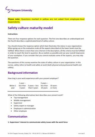 The safety culture maturity model is a survey questionnaire which enables to form an overall safety culture maturity score for an organisation based on the responses gathered.