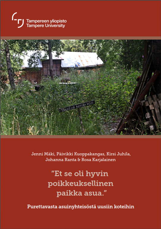 Mäki, Jenni & Kuoppakangas, Päivikki & Juhila, Kirsi & Ranta, Johanna & Karjalainen, Rosa (2023) ”Et se oli hyvin poikkeuksellinen paikka asua”: Purettavasta asuinyhteisöistä uusiin koteihin. Tampere: Tampereen yliopisto. Saatavana: https://urn.fi/URN:ISBN:978-952-03-3020-0