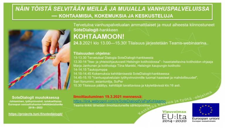SoteDialogit Kohtaamo pidettiin Teams verkkotilaisuutena 24.3.2021. Kiitokset kaikille osallistujille! 25.3.2021 Tapahtumat Uutiset