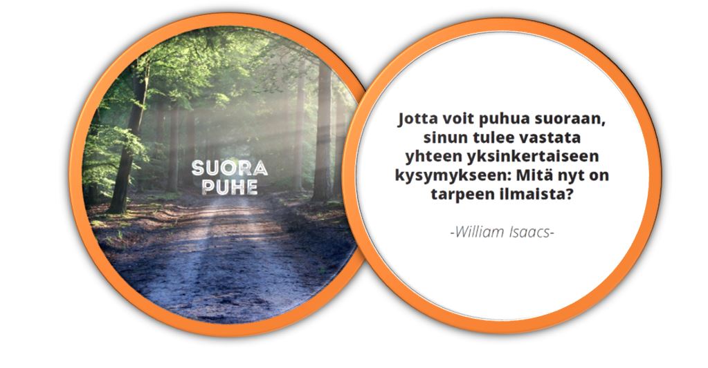Kysymys siitä, mitä nyt on tarpeen ilmaista, kysyy myös puhujalta rehellisyyttä itseään kohtaan. Puhua suoraan, lähtien omista motiiveista, sydämestään ja itseään kunnioittaen. Suora puhe toisille on suoraa puhetta itselle – totuudellista – ja siksi toisinaan kivuliasta. Suora puhe on kuitenkin aidon dialogin peruskivi ja kuten muutkin taidot, sen puhumisen voi jokainen opetella.