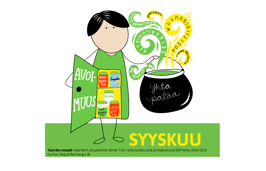 Avoimuuden –reseptin ainesosat ja valmistusohje kiteyttävät tärkeitä työyhteisötaitoja sekä toimivan yhteistyön tekijöitä. Aito läsnäolo vuorovaikutustilanteissa ja osallistujien proaktiivisuus saavat aikaan merkityksellisiä ja vaikuttavia kohtaamisia. Ajan järjestäminen ihmisten välisille kohtaamisille on yleensä kannattava satsaus. Kun työyhteisön jäsenet ja yhteistyökumppanit oppivat tuntemaan toisiaan, antavat toisilleen palautetta sekä tulevat kohdatuiksi ja kuulluiksi, avoimuus yhteistyössä lisääntyy. Avoimuuden ansiosta yhteistyö on luovaa ja sujuvaa.