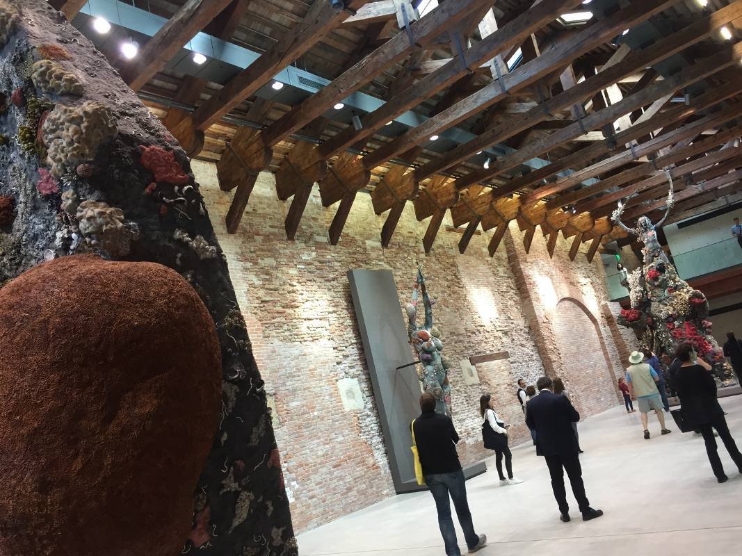 Besides national pavilions, the Biennale incorporates a grand International Exhibition that takes place in Arsenale and the Central Pavilion in Giardini. The International Exhibition has usually a special theme and is curated by a recognized curator. This year the humanism-inspired exhibition ‘Viva Arte Viva!’ was curated by Christine Macel, the chief curator of Centre Pompidou. The International Exhibition consisted of nine pavilions titled ‘Pavilion of Artists and Books’, ‘Pavilion of Joys and Fears’, ‘Pavilion of the Common’, ‘Pavilion of the Earth’, ‘Pavilion of Traditions’, ‘Pavilion of Shamans’, ‘Dionysian Pavilion’, ‘Pavilion of Colors’ and ‘Pavilion of Time and Infinity’.