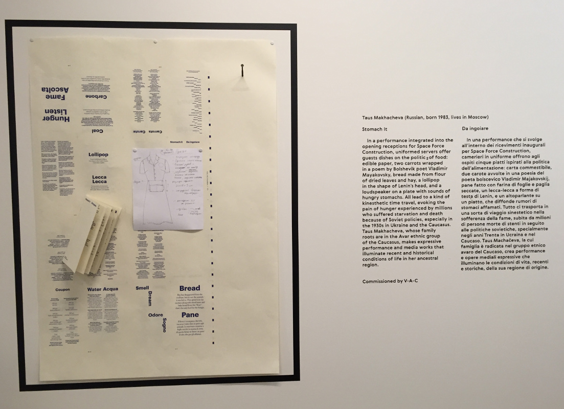 The new Venice headquarters of V-A-C foundation, owned by Russia’s richest man Leonid Mikhelson, opened its doors during the Biennale’s preview days. The exhibition at the four-leveled Palazzo delle Zattere consisted of a mix of works by contemporary artists and key Soviet artists from the 1920s and 1930s. The exhibition was organized together with the Art Institute of Chicago. Besides visual arts, also theater and performances were involved. A member of our “Spaces of Justice” research project, Olga Jitlina participated in the exhibition with her play ‘Translation’. Taus Makhacheva in turn organized a performance that referred to the famine in Ukraine and Caucasus in the 1930s.