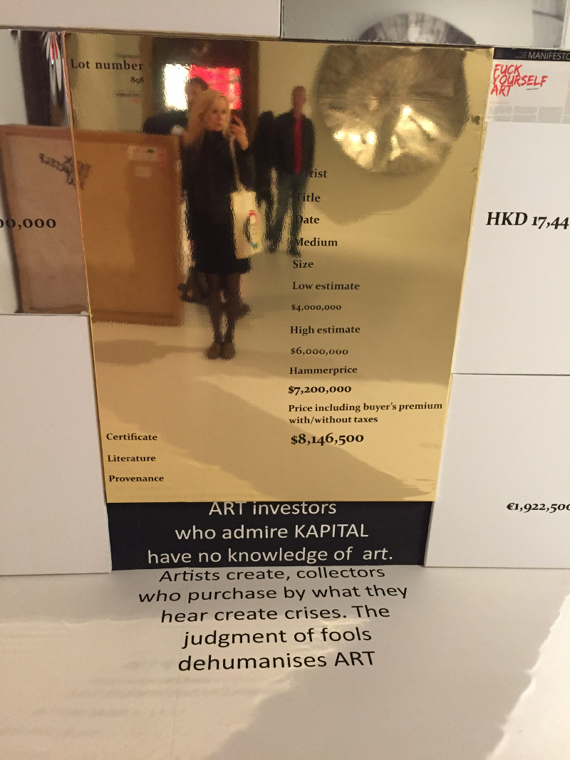 The Biennale also shows that contemporary art can be used to comment on a variety of issues. ‘John Doe’ at the collateral event exhibition ‘Personal Structures’ by the European Cultural Center criticized the commercial dimension of art and the growth of art investment, i.e. the increasing financialization of contemporary art.