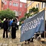 We also participated in a performance organized by a Moscow-based creative collective Laboratory ABC, which aims to connect companies and cultural organizations by “bridging the gap between art and business”. Indeed, Simple, the sponsor of the event and one of the leading wine distributors in Russia, played a visible role at the spectacular performance site of Scuola Grande di San Giovanni Evangelista.
