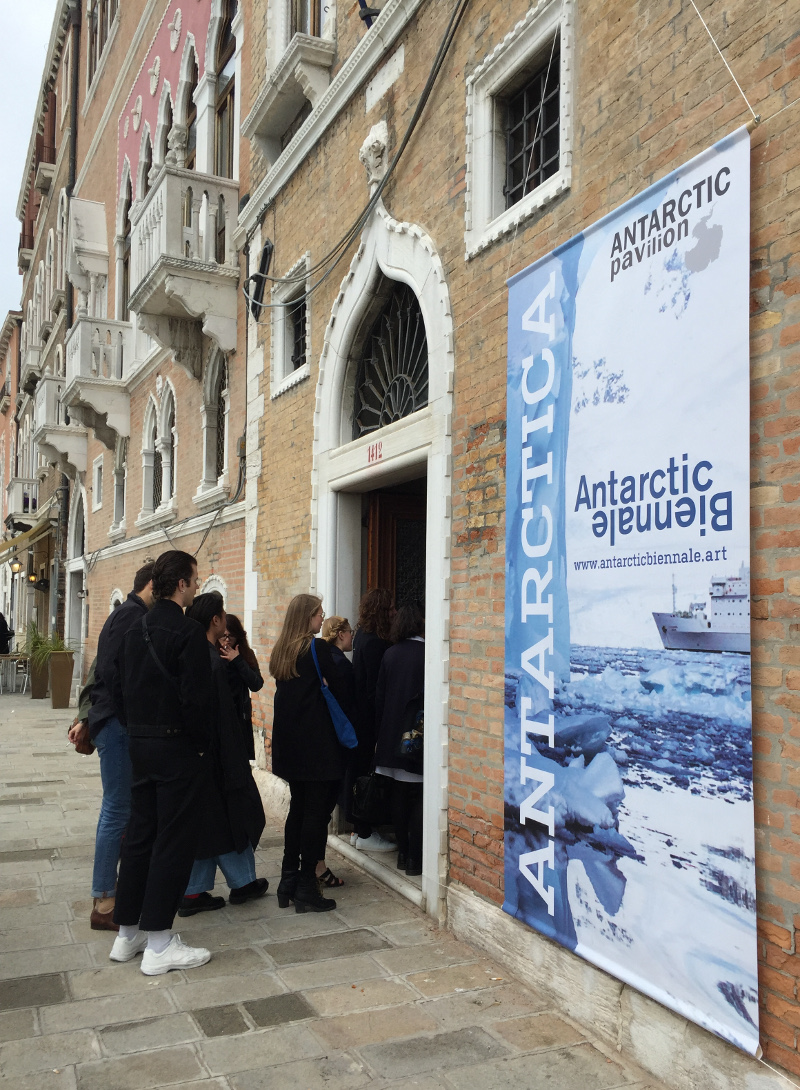 Despite its national pavilions, the Biennale also involves criticism of nation-centered thinking: the Antarctic pavilion based its principles on supranationalism presenting the documentation of the first Antarctic biennale, held earlier this year. Also the NSK state pavilion questioned territorially bounded national spaces, issuing passports for “stateless individuals” and offering public lectures by, for instance, Slavoj Žižek. The posters of NSK state pavilion were found all over the city of Venice.