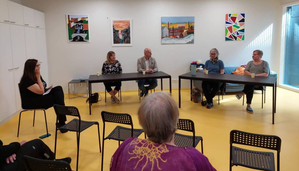 During Kaarikarkelot, a panel discussion was held on the communality of suburbs and housing. The speakers were Pekka Salmi, Deputy Mayor of the City of Tampere, Katja Maununaho, researcher and architect from Tampere University, Raija Kotilainen, NGO worker from Setlementti Tampere ry, and Asta Ikonen, a resident of the life-cycle block. We got a good overview of the community from the upper level of the city all the way to the everyday life of the resident.