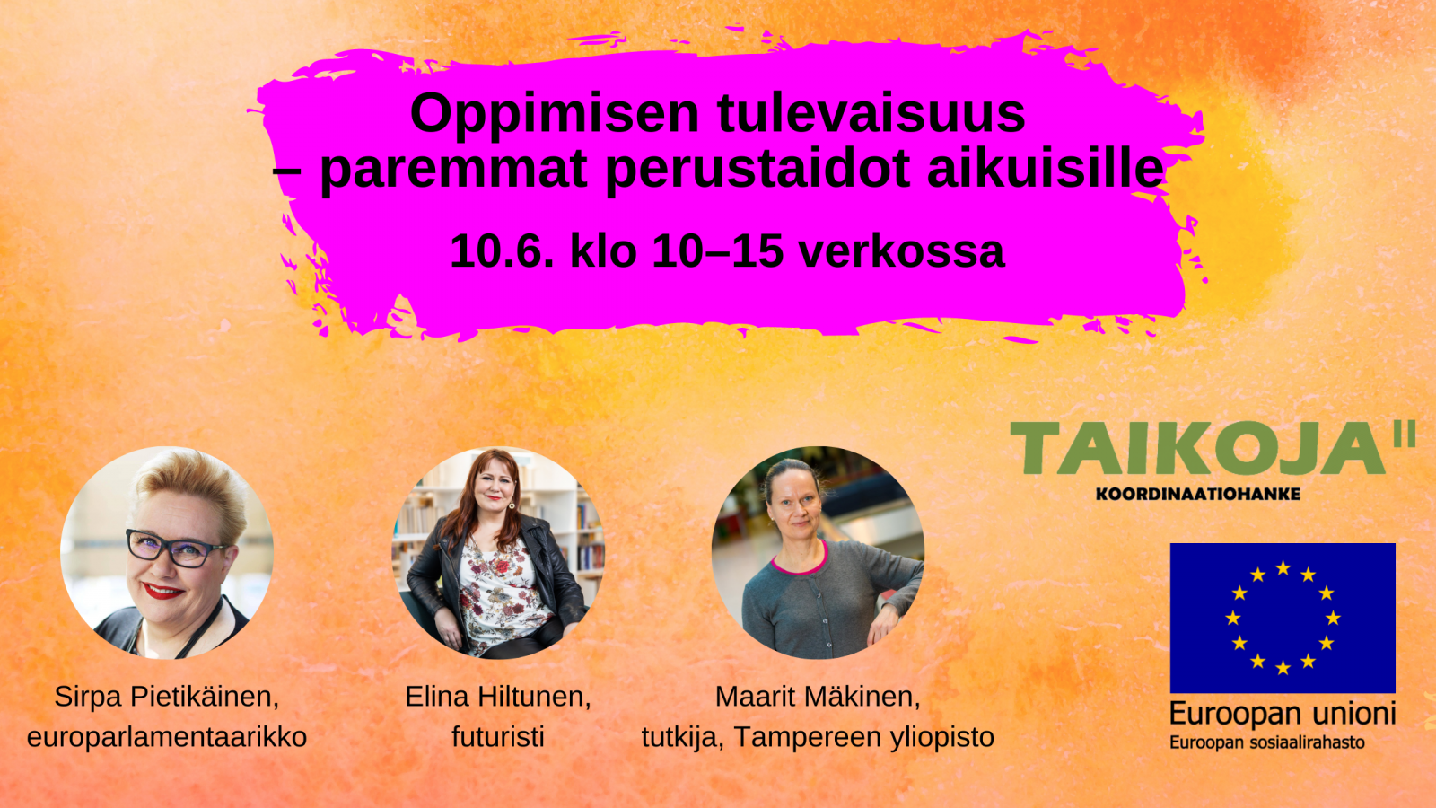 Virtuaalisessa teemapäivässä kuulemme puheenvuoroja ja pohdimme yhdessä, miten oppiminen muuttuu ja miten perustaidot pitävät aikuisen kiinni arjessaan. Tervetuloa mukaan!