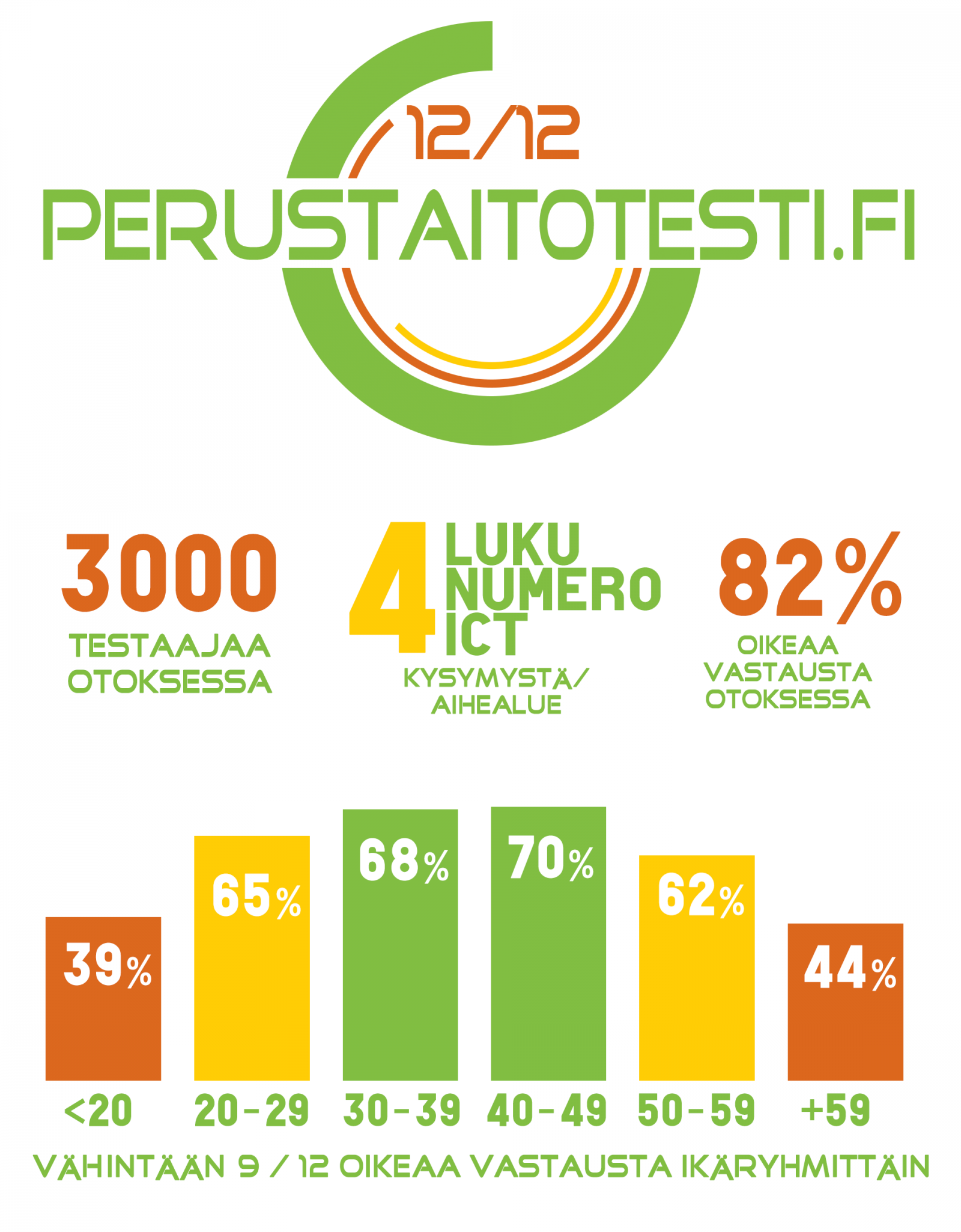 TAIKOJA-hankkeessa kehitetty Perustaitotesti.fi on suunniteltu luku- ja numerotaitojen sekä tietoteknisten taitojen arviointiin. Testin tarkoituksena on kertoa suuntaa antavasti millaiset perustaidot ovat tarpeellisia arjessa toimimiseksi sekä herättää aiheesta keskustelua.