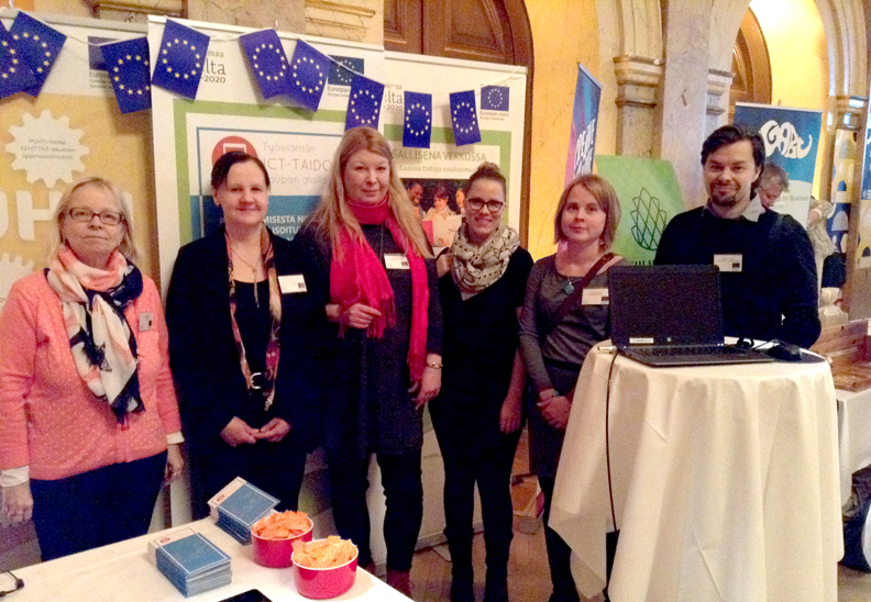 Euroopan sosiaalirahaston (ESR) 60-vuotista taivalta juhlittiin 16.2.2017 näyttävin menoin Helsingin vanhalla ylioppilastalolla. TAIKOJA sai tehtäväkseen koota paikalle edustavan otoksen käynnissä olevista TAITO-ohjelman hankkeista ja mukaan TAITO-ständille pääsikin kolme verkoston hanketta (Puhti, Osallisena verkossa ja Työelämän ICT-taidot kaupan alalla) toimintaansa esittelemään. Tilaisuuden pääpuhuja, ministeri Jari Lindström otti kantaa siihen kuinka tärkeää tasapuolisten mahdollisuuksien turvaaminen nykypäivän yhteiskunnassa on. Päivän aikana lavalle nousi paneelikeskustelijoita ESR:n erilaisista tulokulmista ja yleisö saikin kuulla asiantuntevia näkökulmia perustaitojen, työssä vaadittavan osaamisen, työssä jaksamisen ja muun muassa elämänkaarioppimisen parista.