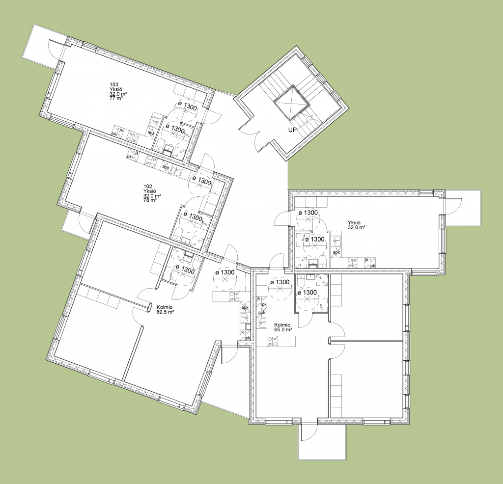 Asuntosuunnittelun perusidea on anonyymit raakatilat. Neljän metrin huoneleveys sopii moneen eri käyttötarkoitukseen, ja asukkaat päättävät huonejärjestyksen itse. Tiloihin on mahdollista rakentaa jälkikäteen rajaavia väliseiniä ja esimerkiksi makuualkoveja. Kolmioissa kevyitä seiniä voidaan purkaa ja moduulien välisiin seiniin voidaan avata uusia aukkoja, mikäli huonejakoa halutaan muuttaa. Kaikki asunnot saavat luonnonvaloa vähintään kahdesta ilmansuunnasta. Toisaalta huoneissa on riittävästi ehyttä seinäpintaa sitä tarvitsevia kirjahyllyjä ja vuoteita varten.