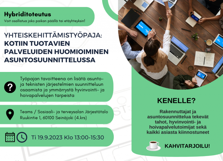 Kotiin tuotavien palveluiden huomioiminen asuntosuunnittelussa -työpaja Seinäjoella 19.9.2023