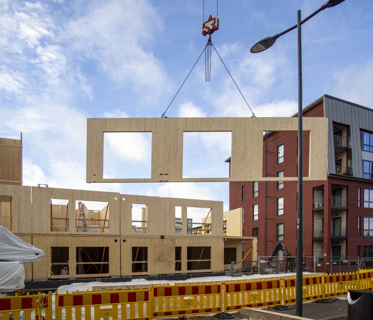 Puutaloa rakennetaan Turun Linnafjältissä.