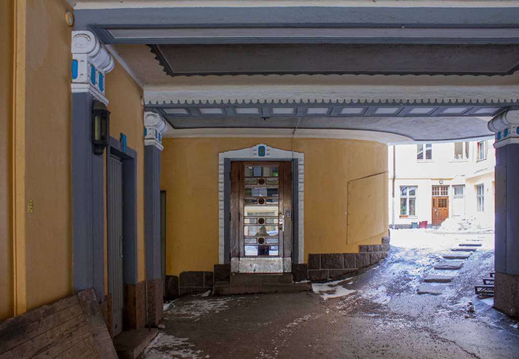 Kohta c) sisältää asuntosuunnittelun lisäksi myös muun asuinympäristön: porrashuoneet ja yhteistilat, korttelit pihoineen, tiet ja lähipalvelut. Varsinkaan pandemian jälkipuolella ulkotiloissa tapahtuvia kohtaamisia ei enää pidetty erityisen riskialttiina. Myöskään porrashuoneet tai asuintalojen yhteistilat eivät nousseet esille riskipaikkoina, sillä niissä vietetään vain vähän aikaa ja etäisyyden pitäminen on helppoa. Osa hankkeen demosuunnitelmista on lisäksi luhtitaloja, joissa porraskäytävät ovat hissejä lukuun ottamatta ulkotilassa. Tämä pienentää myös rakennuksen lämmitettävää tilavuutta ja siten energiankulututusta.