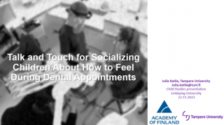 While my original goal during my stay—to update my Swedish skills—has unfortunately not gone according to plan, I have had the chance to have many warm exchanges with people and to experience the friendly work atmosphere here. I have been able to discuss the Touch and Affect in Health Care project with different research groups and to present data from Finnish dental clinics. Building on a presentation I gave to the Child Studies Department, entitled “Talk and Touch for Socializing Children About How to Feel During Dental Appointments,” and the helpful comments I received about my work, I have started to develop ideas for an article with the help of Asta, who has done some groundbreaking work on touch for socializing children into appropriate participation in schools and families.