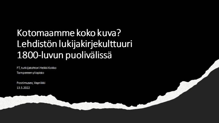 Heikki Kokon yleisöluento suomenkielisen lehdistön lukijakirjekulttuurista 1800-luvulla Museokeskus Vapriikissa perjantaina 13.5.2022 4.5.2022 Uutiset