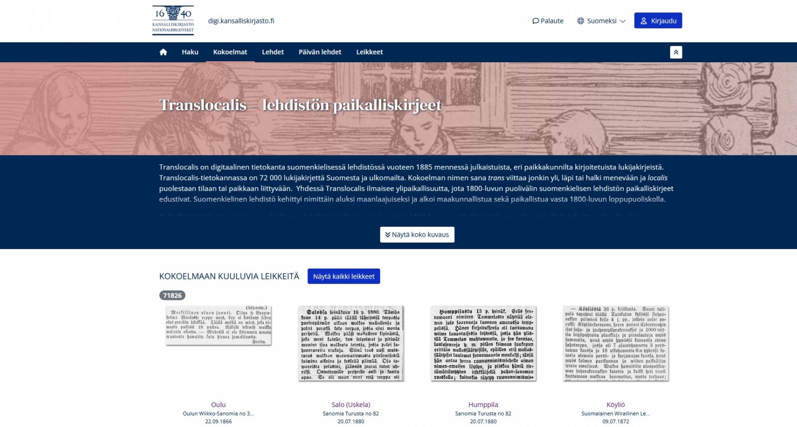 Kansalliskirjaston kulttuuriperintökokoelmana tietokanta palvelee niin tutkijoita kuin menneisyydestä kiinnostunutta suurta yleisöä.