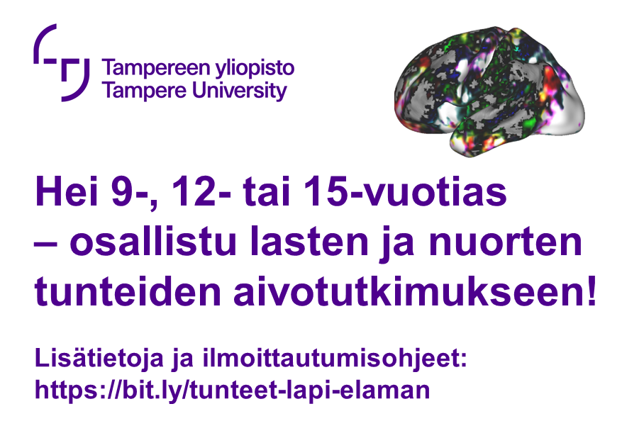 Aivokuvantamismittausten aikataulutus on alkanut, joten tutkimukseen voi ilmoittautua mukaan jo nyt. Etsimme tutkimukseen 9-, 12- ja 15-vuotiaita, äidinkieleltään suomenkilisiä, oikeakätisiä lapsia ja nuoria. Tutkimuskäynnit aloitetaan huhtikuun lopusta alkaen. Saat lisätietoja ajanvarauksesta ilmoittautumisen jälkeen. Ilmoittautumisesta ja tutkimuksesta löydät lisää tietoa ”Osallistu tutkimukseen” -välilehdeltä. Tervetuloa mukaan!