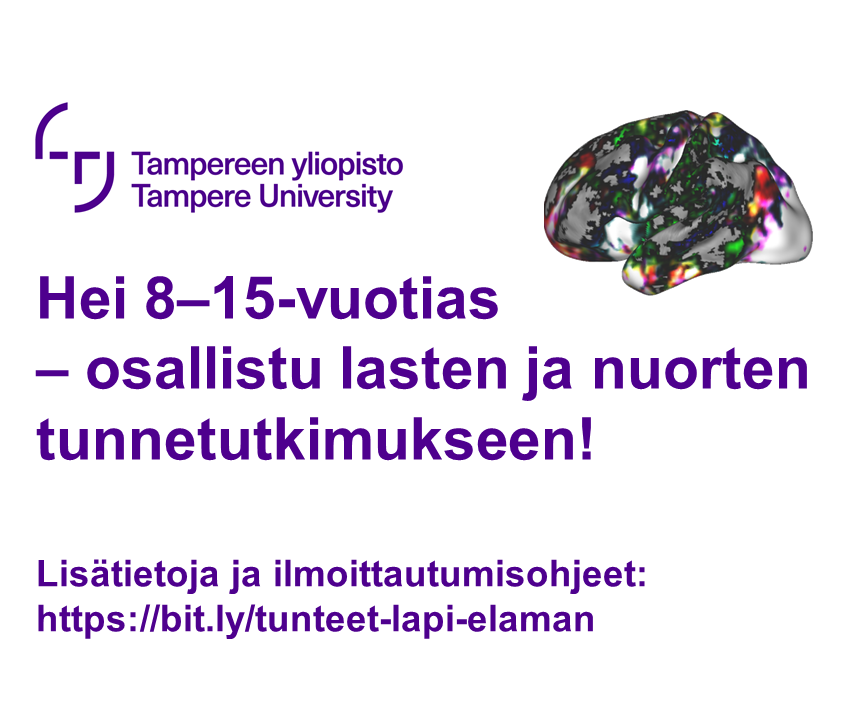 Tällä hetkellä etsimme 8-15-vuotiaita, suomenkielisiä lapsia ja nuoria osallistumaan Tampereen yliopiston keskustakampuksella toteutettaviin laboratoriomittauksiin. Voit lukea lisätietoja tutkimuksesta ja mukaan ilmoittautumisesta täältä. Tervetuloa mukaan!