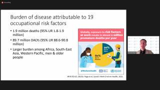 Kuvateksti: WHO:n Frank Pega tarkasteli muun muassa ennaltaehkäistävissä olevien työhön liittyvien kuolemien lukumäärää.
