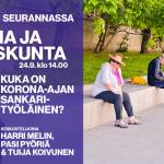 24.9. klo 14.00 Tampereen yliopiston yhteiskuntatieteiden tiedekunnan ja Alusta-verkkojulkaisun Seurannassa-podcastin aiheena on korona ja työelämä. Aiheesta keskustelemassa ovat Harri Melin, Pasi Pyöriä ja Tuija Koivunen. Puhetta johtaa Tiina Heikkilä. Livestriimi ja tallenne Seurannassa-sarjan kotisivuilla: