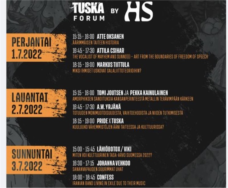 Atte Oksanen will talk at Tuska Forum by Helsingin Sanomat, 1 July, Tuska Festival 2022, Helsinki 14.6.2022 Event
