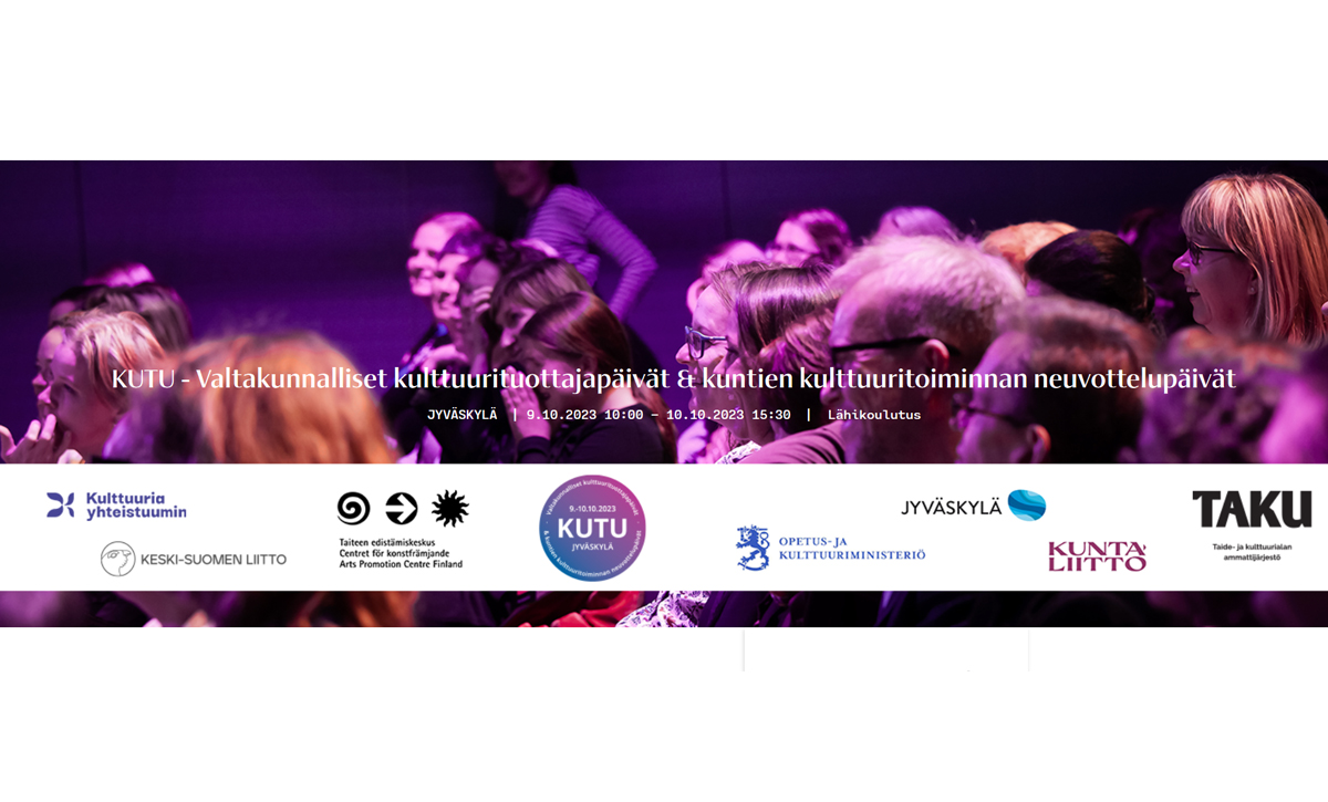 KUTU - Valtakunnalliset kulttuurituottajapäivät & kuntien kulttuuritoiminnan neuvottelupäivät on kaksipäiväinen seminaaritapahtuma, joka järjestetään 9.-10.10.2023 Jyväskylässä, messu- ja tapahtumakeskus Paviljongissa.