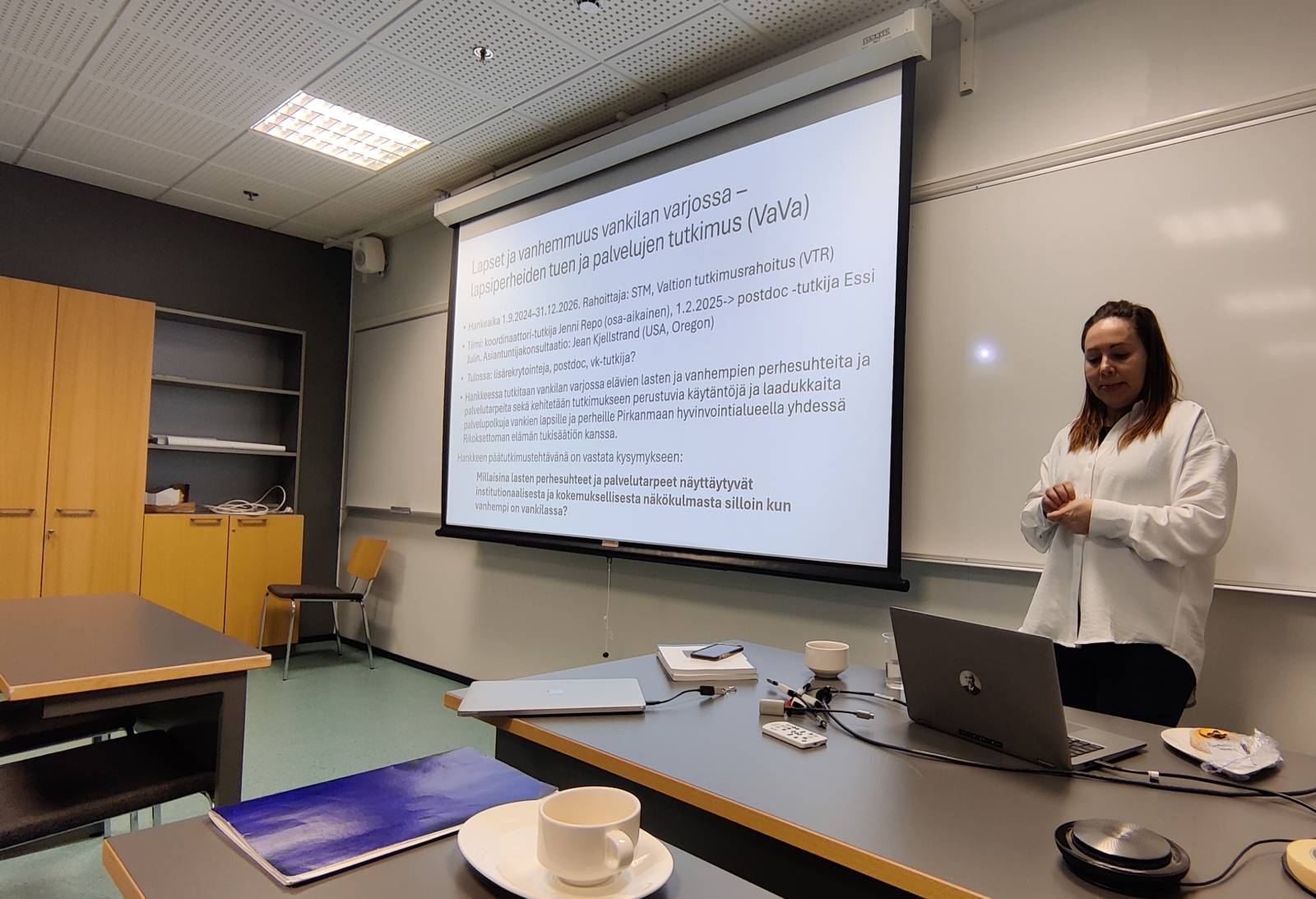 Lapset ja vanhemmuus vankilan varjossa – tutkimushankkeen tutkijat esittelivät hanketta ja keskustelivat suunnitelman ja aiheen herättämistä kysymyksistä Tampereen yliopiston Lapsuuden, nuoruuden ja perheen tutkimuskeskus Perlan (linkki) Perlantai-tapahtumassa 21.2.2025. Perlantai on tutkijoille ja muille kiinnostuneille suunnattu keskustelullinen seminaari tutkimuksen tekoon liittyvistä kysymyksistä.