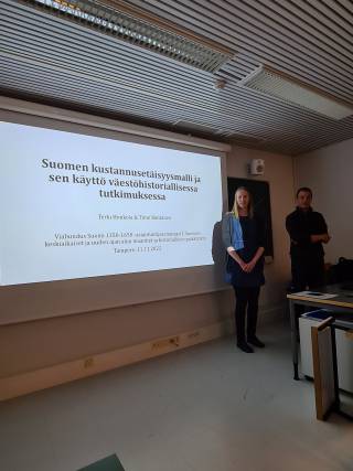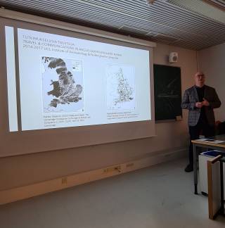 Esitelmien pitäjien problematisoiva ote ja yleisön kommentointi jatkui vireänä läpi kahden viimeisen esityksen, joissa FT Eljas Oksanen (Helsingin yliopisto) käsitteli hankepilotin jälkeiseen vaiheeseen edennyttä tuoretta projektiaan Senaatin kartaston tiestön paikkatietokannasta sekä esitteli laajasti omiin tutkimuskokemuksiinsa ja aiempiin hankkeisiinsa kuulunutta Englannin ja Ison-Britanninan historiallisen tiestön geospatiaalista tutkimusta, etenkin sen metodologisia ja teorettisia havaintoja. Päivän viimeisessä esityksessä FT Terhi Honkola ja väitöskirjatutkija Timo Rantanen (molemmat Turun yliopisto) selvittivät laatimaansa Suomen kustannusetäisyysmallia ja sen käyttöä väestöhistoriallisesssa tutkimuksessa. Tutkimus perustuu laajaan maantieteelliset, topografiset ja väestöliset muuttujat huomioivaan materiaaliin ja on uraauurtava työ, jonka avulla on mahdollista probelmatisoida erilaisten yhteysrakenteiden vaikutusta liikkumiseeen, liikkuvuuteen ja aluemuodostukseen.