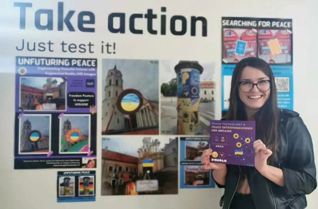 This project explores the potential of image-making in augmented reality (AR) technologies as means of designing sustaining quality peace futures—unfuturing peace, focusing on Ukraine’s heroic defense against Russia’s 2022–2024 full-scale war of aggression as a case study. Employing the methodology of compositional interpretation and the conceptual tool “futures images,” the project theoretically and practically differentiates between defuturing and unfuturing as peace design processes in developing an essay of originally designed marker-based Augmented Reality Posters in Support of Ukraine as demos of sustaining quality peace arrangements. The posters reference the topics of (physical) integrity of Ukrainian symbols, global food security and the security of the LGBTQI+ community in Ukraine. The technological artistic process/outcomes of this AR image-making experiment and their relation to power layouts in peacebuilding form the bases for theorizing how AR-supported futures design in war-affected communities—unfuturing peace—could facilitate “guerrilla peacebuilding.” In outlining theoretical and practical premises of guerilla peacebuilding, the project intersects Augmented Reality Posters in Support of Ukraine with explorations of guerilla warfare and counterinsurgency efforts leading to the 2016 Havana Peace Agreements in Colombia as well as mobile technologies/power in guerrilla approaches to democratic development.