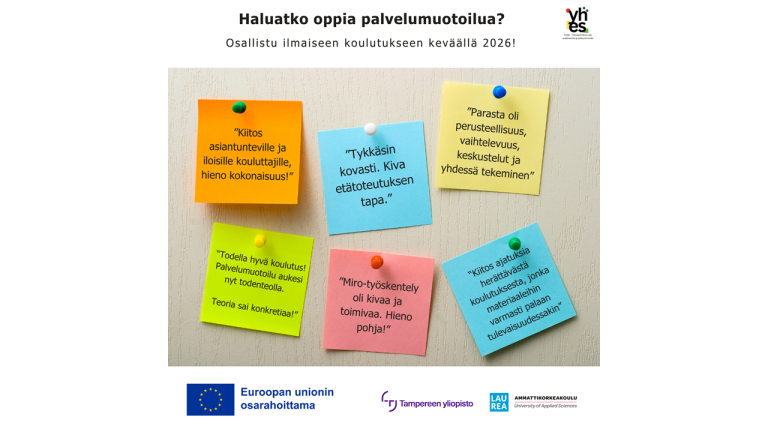Haluatko oppia yhteiskehittämistä ja palvelumuotoilua verkossa? Lämpimästi tervetuloa ilmaiseen yhteiskehittämisen koulutukseen keväällä 2025 11.10.2024 Uutiset